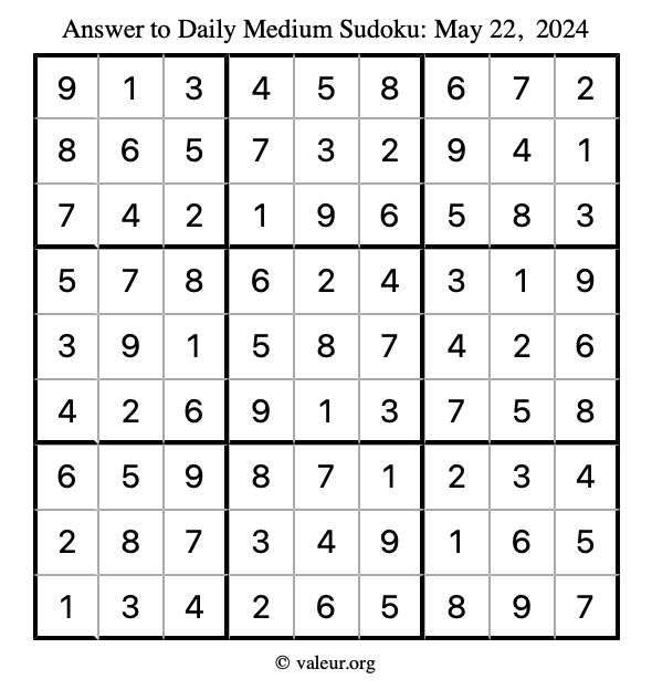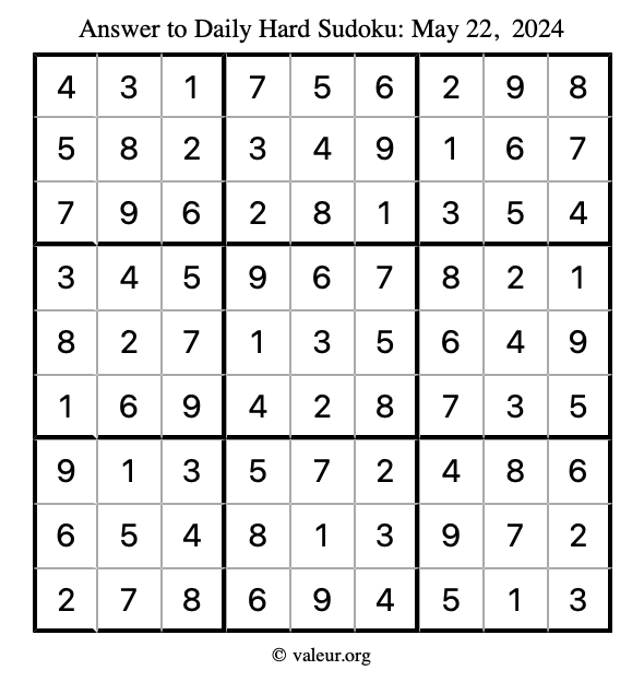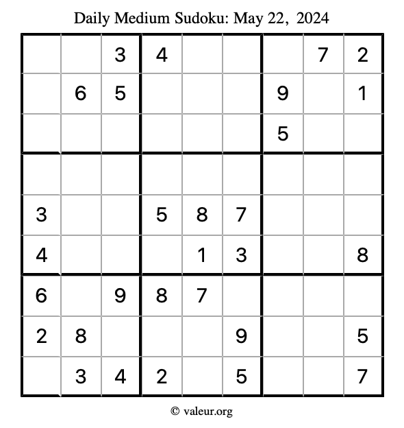 Daily Four Sudoku Puzzles May 22, 2024 is not the only daily set of sudoku puzzles we have. We create four sudoku puzzles every day for you to print and solve. Check out today's set of four sudoku puzzles here!