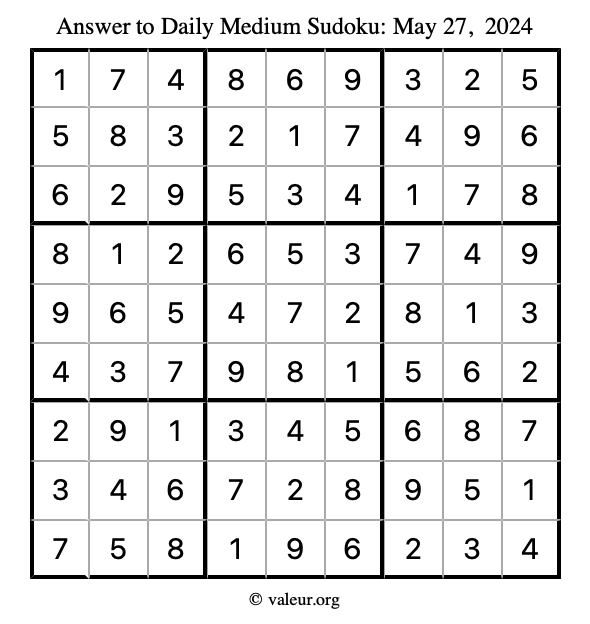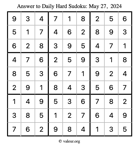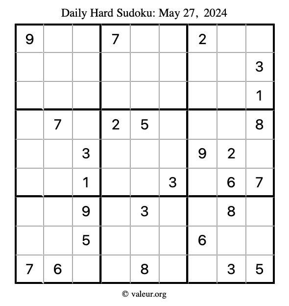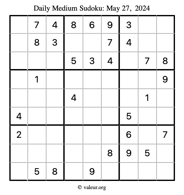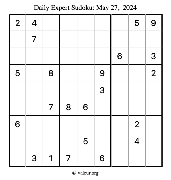 Daily Four Sudoku Puzzles May 27, 2024 is not the only daily set of sudoku puzzles we have. We create four sudoku puzzles every day for you to print and solve. Check out today's set of four sudoku puzzles here!