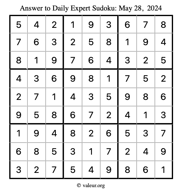 Here are the May 28, 2024 daily four sudoku puzzles. You are welcome to print a copy of the puzzles and solve them by hand. For your convenience, we have also included the solutions further down the page so you can check your work.