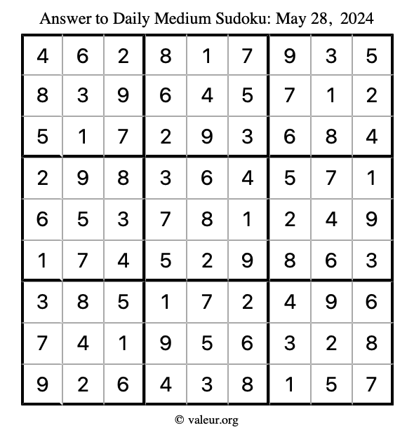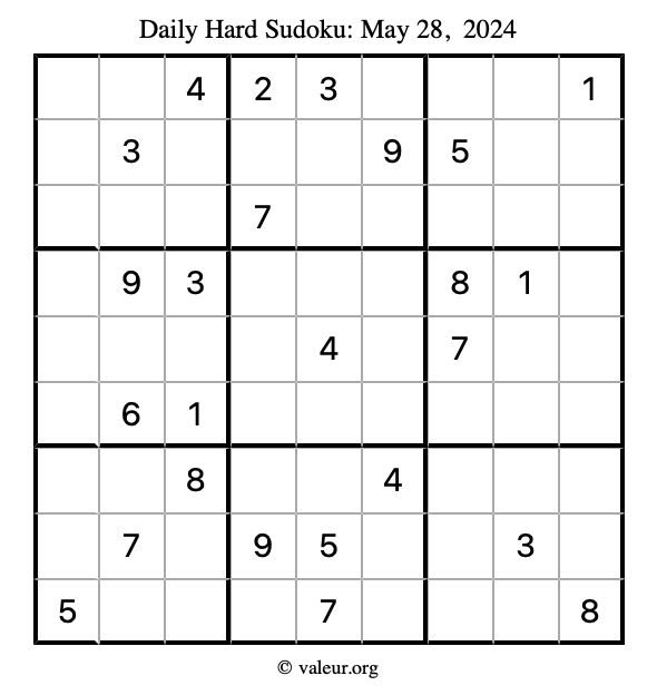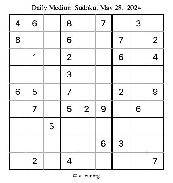 Daily Four Sudoku Puzzles May 28, 2024 is not the only daily set of sudoku puzzles we have. We create four sudoku puzzles every day for you to print and solve. Check out today's set of four sudoku puzzles here!