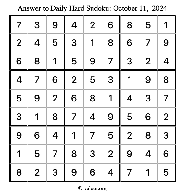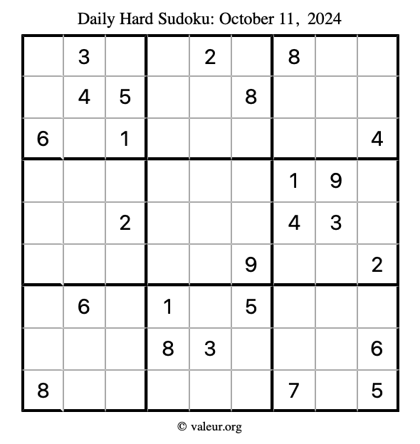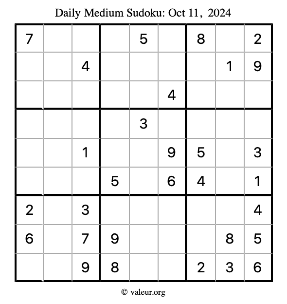 Daily Four Sudoku Puzzles October 11, 2024 is not the only daily set of sudoku puzzles we have. We create four sudoku puzzles every day for you to print and solve. Check out today's set of four sudoku puzzles here!
