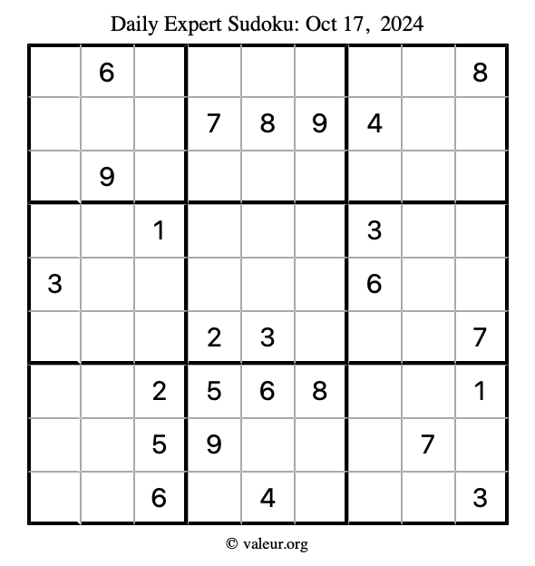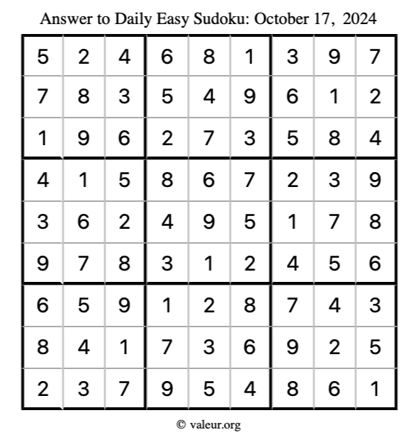 Here are the October 17, 2024 daily four sudoku puzzles. You are welcome to print a copy of the puzzles and solve them by hand. For your convenience, we have also included the solutions further down the page so you can check your work.