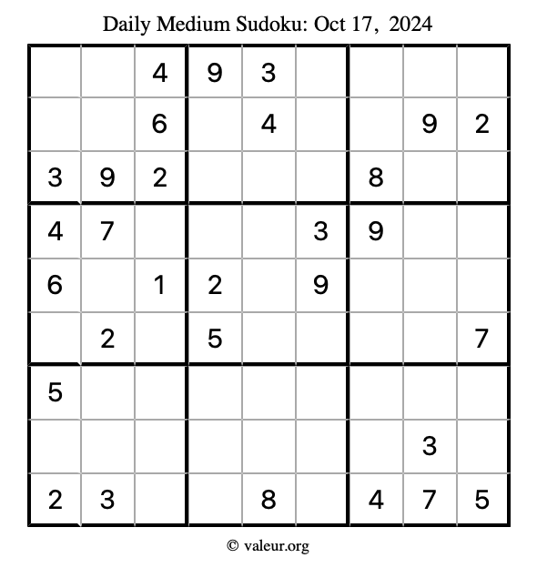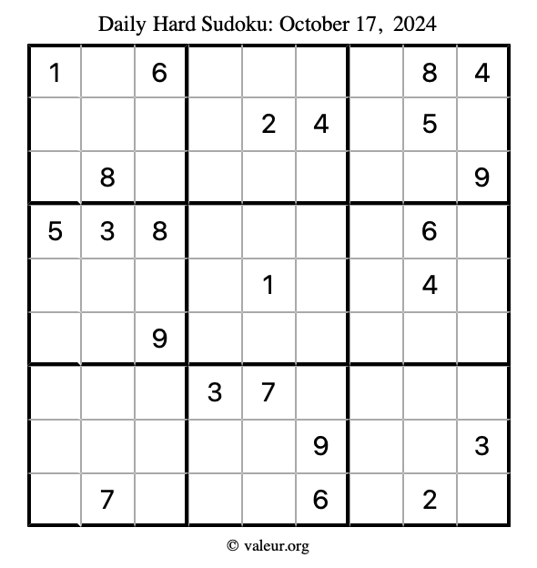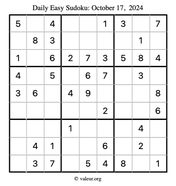 Daily Four Sudoku Puzzles October 17, 2024 is not the only daily set of sudoku puzzles we have. We create four sudoku puzzles every day for you to print and solve. Check out today's set of four sudoku puzzles here!