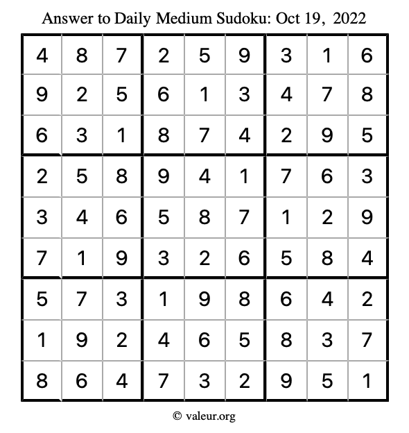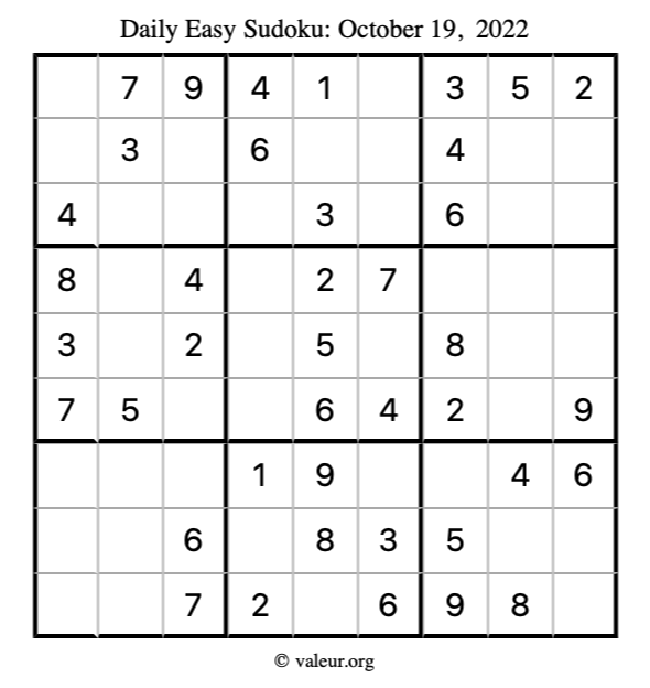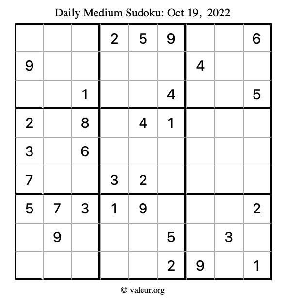 Daily Four Sudoku Puzzles October 19, 2022 is not the only daily set of sudoku puzzles we have. We create four sudoku puzzles every day for you to print and solve. Check out today's set of four sudoku puzzles here!