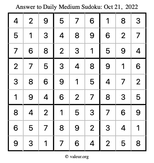 Daily Four Sudoku Puzzles October 21, 2022 is not the only daily set of sudoku puzzles we have. We create four sudoku puzzles every day for you to print and solve. Check out today's set of four sudoku puzzles here!