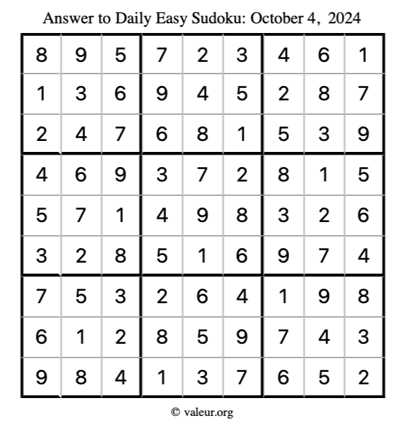 As promised, here is the solution to the October 4, 2024 set of daily four sudoku puzzles: