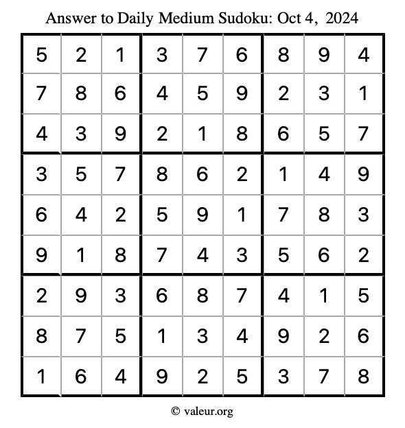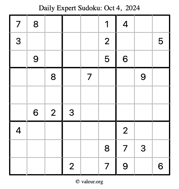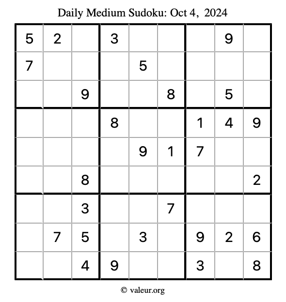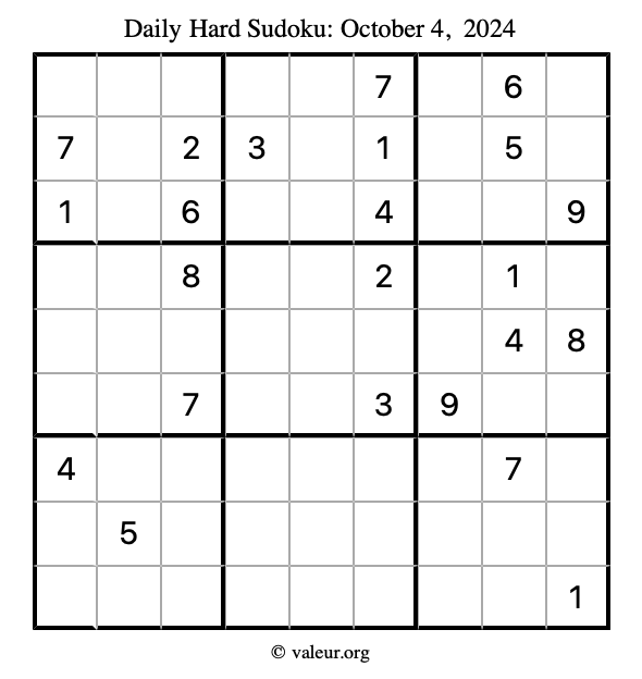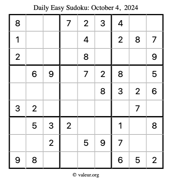 Daily Four Sudoku Puzzles October 4, 2024 is not the only daily set of sudoku puzzles we have. We create four sudoku puzzles every day for you to print and solve. Check out today's set of four sudoku puzzles here!