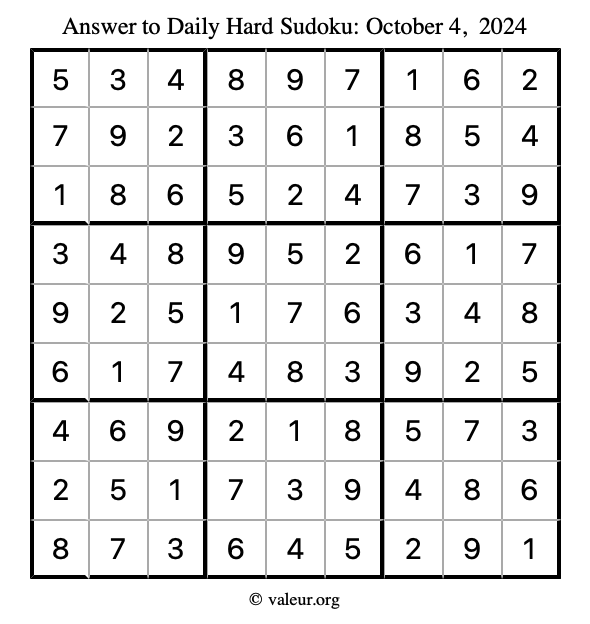 Here are the October 4, 2024 daily four sudoku puzzles. You are welcome to print a copy of the puzzles and solve them by hand. For your convenience, we have also included the solutions further down the page so you can check your work.