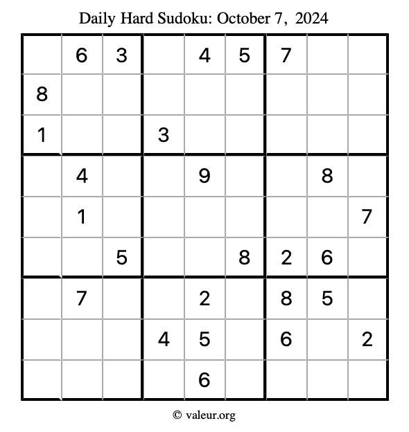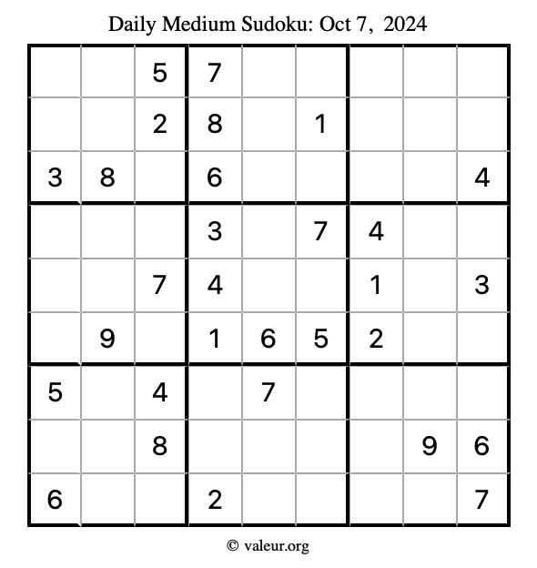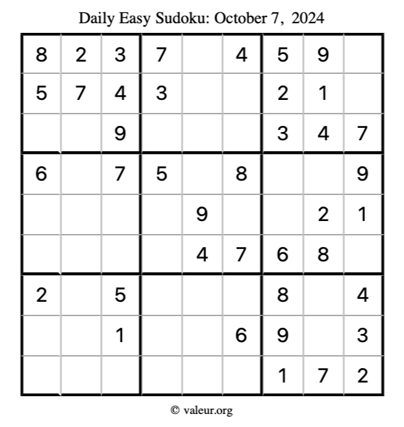 Daily Four Sudoku Puzzles October 7, 2024 is not the only daily set of sudoku puzzles we have. We create four sudoku puzzles every day for you to print and solve. Check out today's set of four sudoku puzzles here!