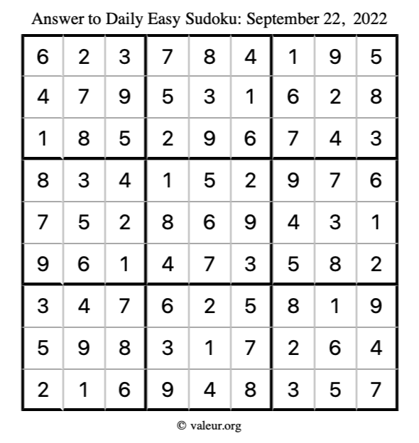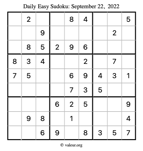 Here are the September 22, 2022 daily four sudoku puzzles. You are welcome to print a copy of the puzzles and solve them by hand. For your convenience, we have also included the solutions further down the page so you can check your work.