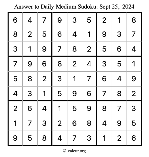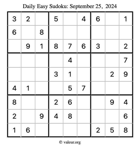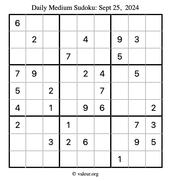 Daily Four Sudoku Puzzles September 25, 2024 is not the only daily set of sudoku puzzles we have. We create four sudoku puzzles every day for you to print and solve. Check out today's set of four sudoku puzzles here!
