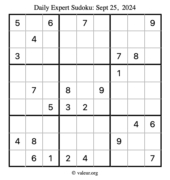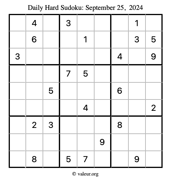 Here are the September 25, 2024 daily four sudoku puzzles. You are welcome to print a copy of the puzzles and solve them by hand. For your convenience, we have also included the solutions further down the page so you can check your work.