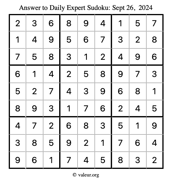 As promised, here is the solution to the September 26, 2024 set of daily four sudoku puzzles:
