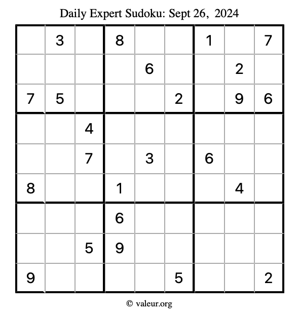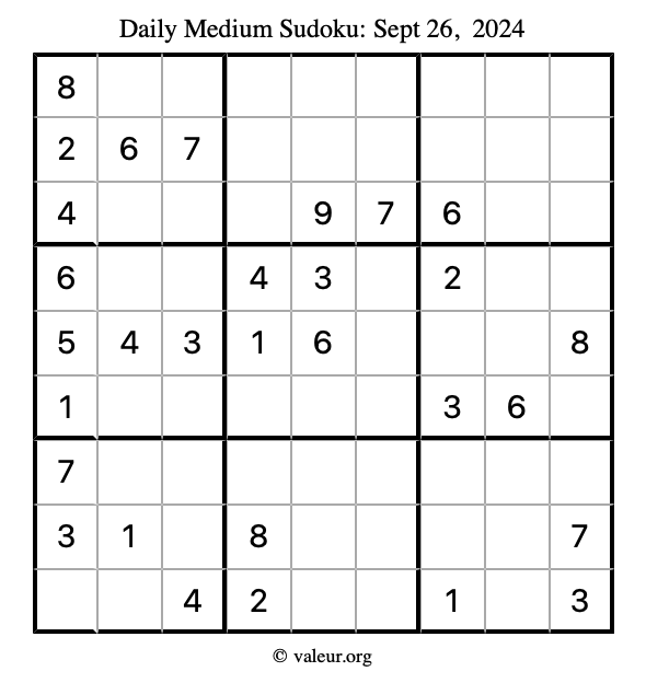 Here are the September 26, 2024 daily four sudoku puzzles. You are welcome to print a copy of the puzzles and solve them by hand. For your convenience, we have also included the solutions further down the page so you can check your work.