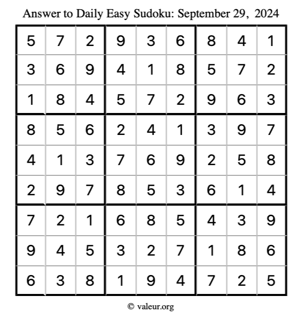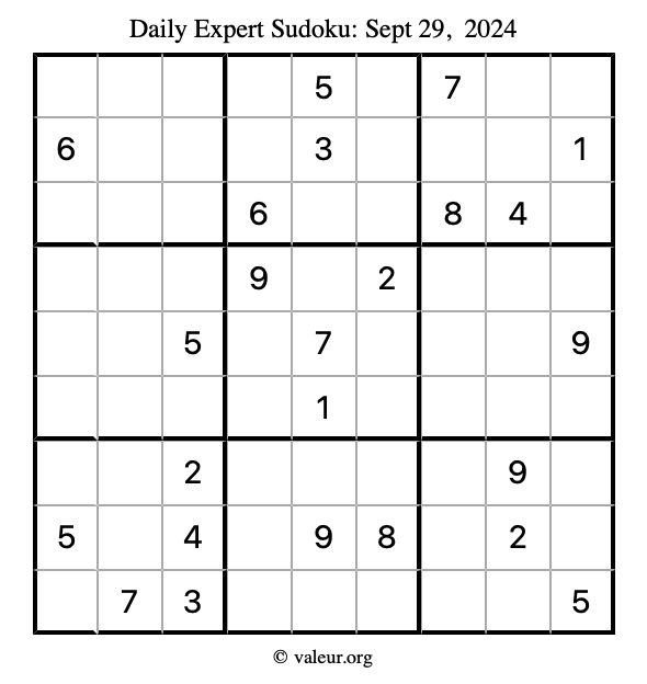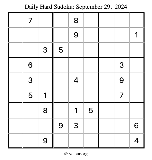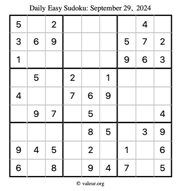 Here are the September 29, 2024 daily four sudoku puzzles. You are welcome to print a copy of the puzzles and solve them by hand. For your convenience, we have also included the solutions further down the page so you can check your work.