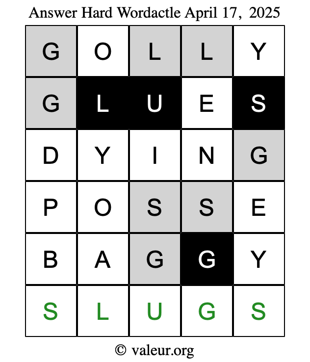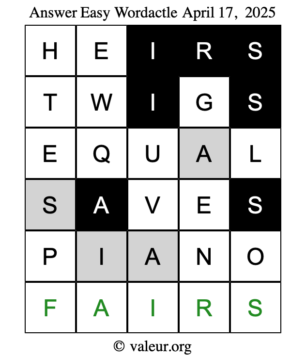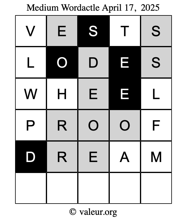 As promised, here is the solution to the April 17, 2025 set of daily four Wordactle puzzles:
