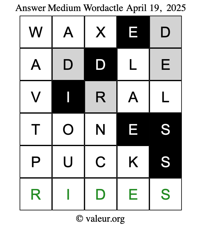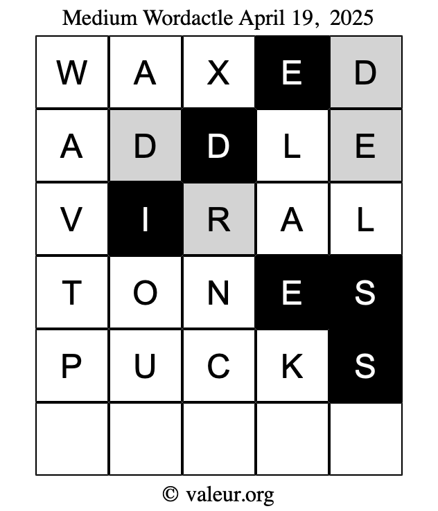 As promised, here is the solution to the April 19, 2025 set of daily four Wordactle puzzles:
