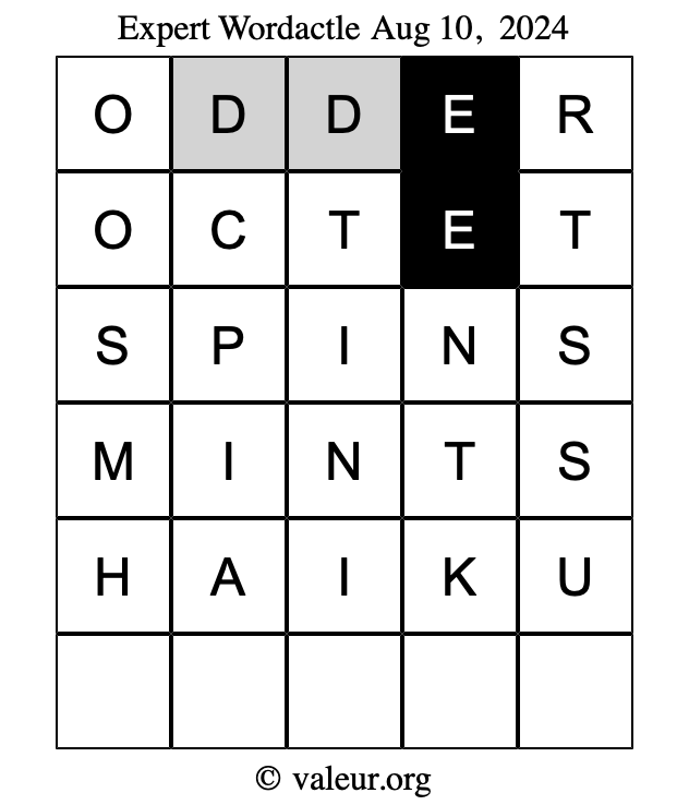 As promised, here is the solution to the August 10, 2024 set of daily four Wordactle puzzles: