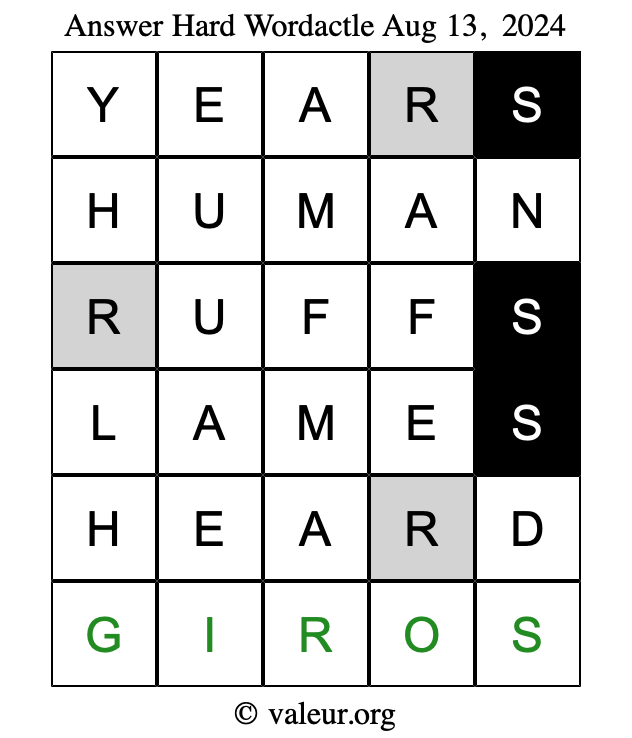 As promised, here is the solution to the August 13, 2024 set of daily four Wordactle puzzles: