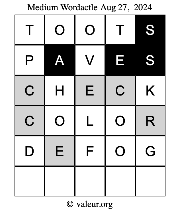 As promised, here is the solution to the August 27, 2024 set of daily four Wordactle puzzles:
