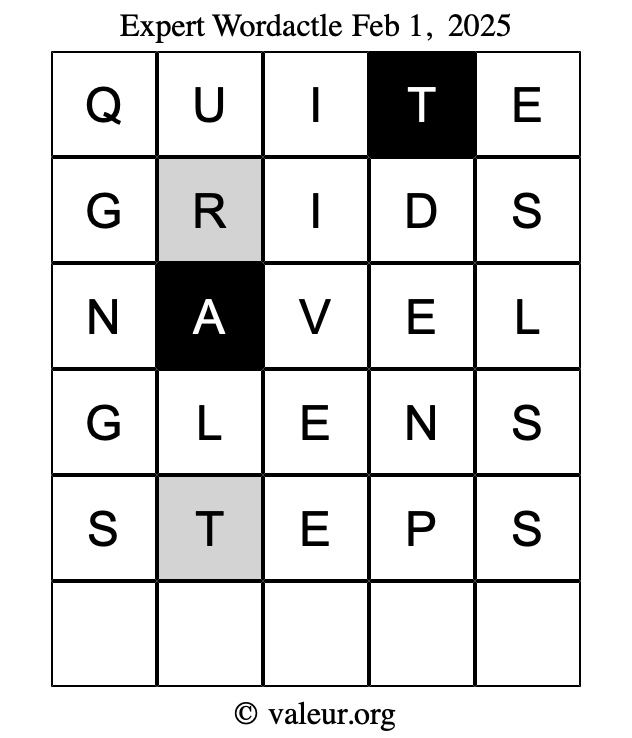 As promised, here is the solution to the February 1, 2025 set of daily four Wordactle puzzles: