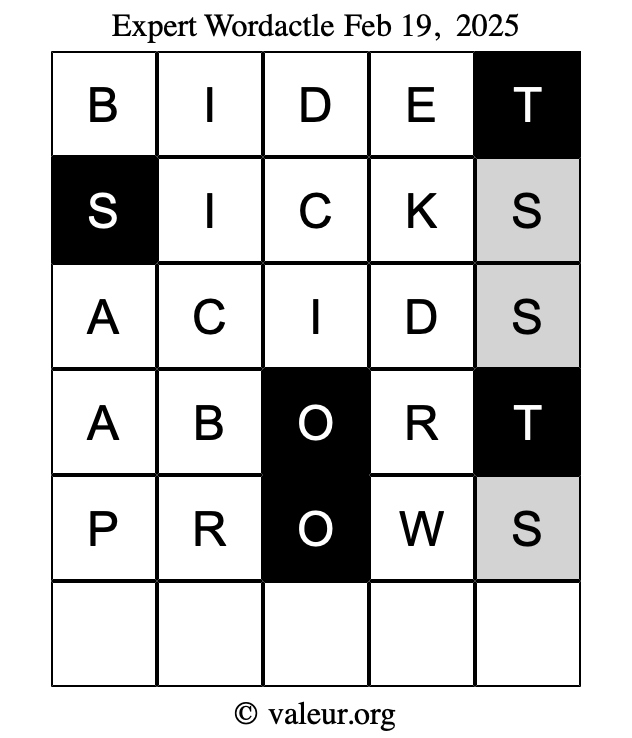 As promised, here is the solution to the February 19, 2025 set of daily four Wordactle puzzles: