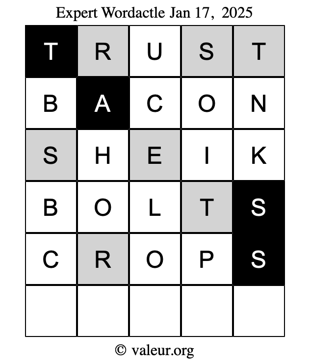 As promised, here is the solution to the January 17, 2025 set of daily four Wordactle puzzles: