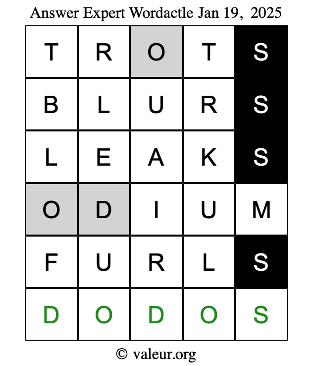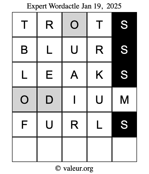 As promised, here is the solution to the January 19, 2025 set of daily four Wordactle puzzles: