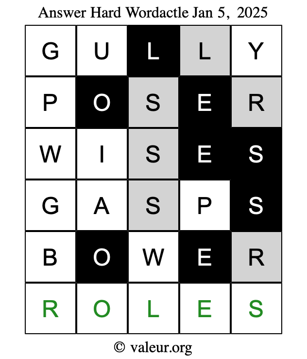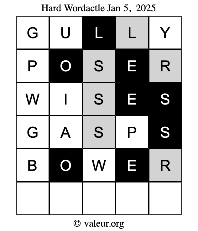 As promised, here is the solution to the January 5, 2025 set of daily four Wordactle puzzles: