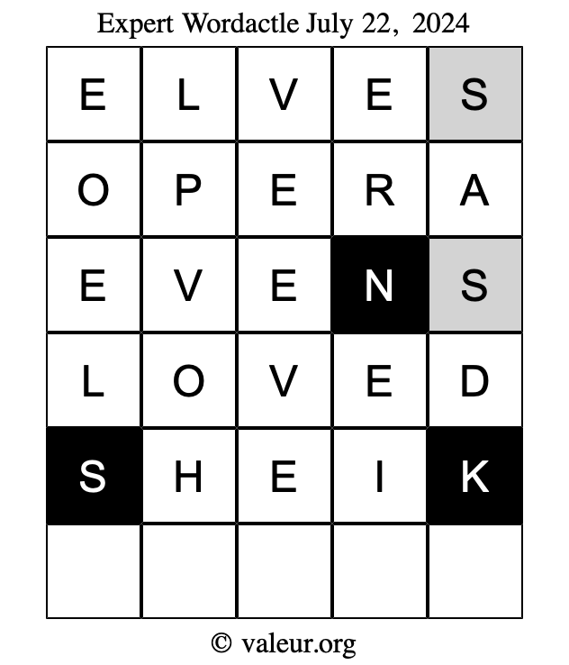 As promised, here is the solution to the July 22, 2024 set of daily four Wordactle puzzles: