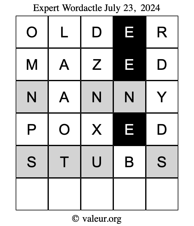 As promised, here is the solution to the July 23, 2024 set of daily four Wordactle puzzles: