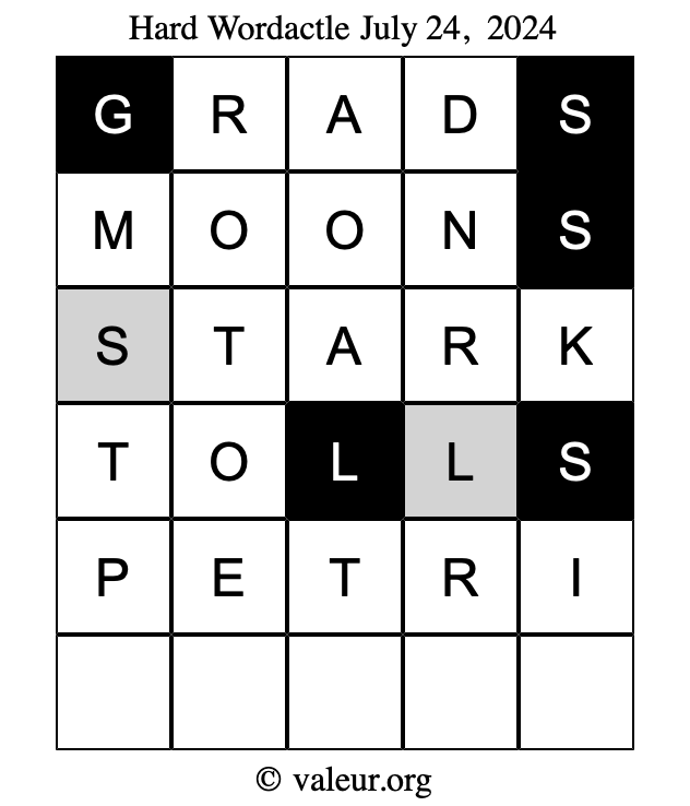 As promised, here is the solution to the July 24, 2024 set of daily four Wordactle puzzles: