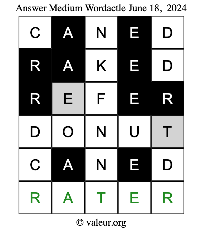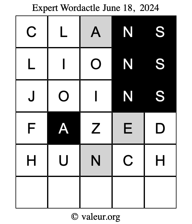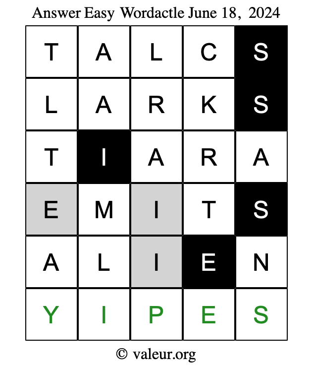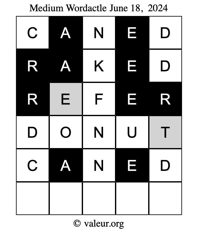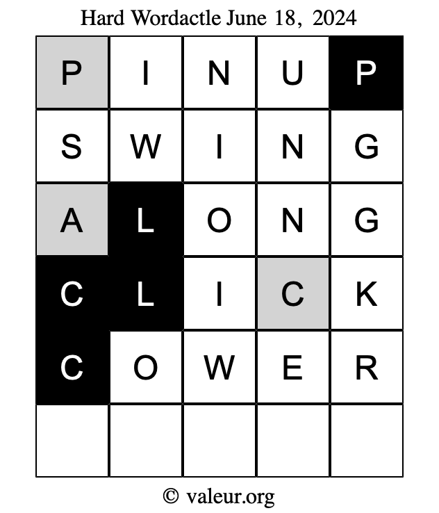 Here are the June 18, 2024 daily four Wordactle puzzles. You are welcome to print a copy of the puzzles and solve them by hand. For your convenience, we have also included the solutions further down the page so you can check your work.