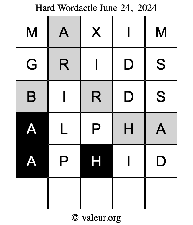 As promised, here is the solution to the June 24, 2024 set of daily four Wordactle puzzles: