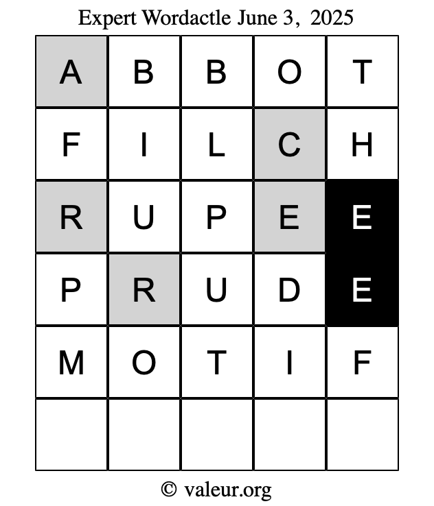 As promised, here is the solution to the June 3, 2025 set of daily four Wordactle puzzles: