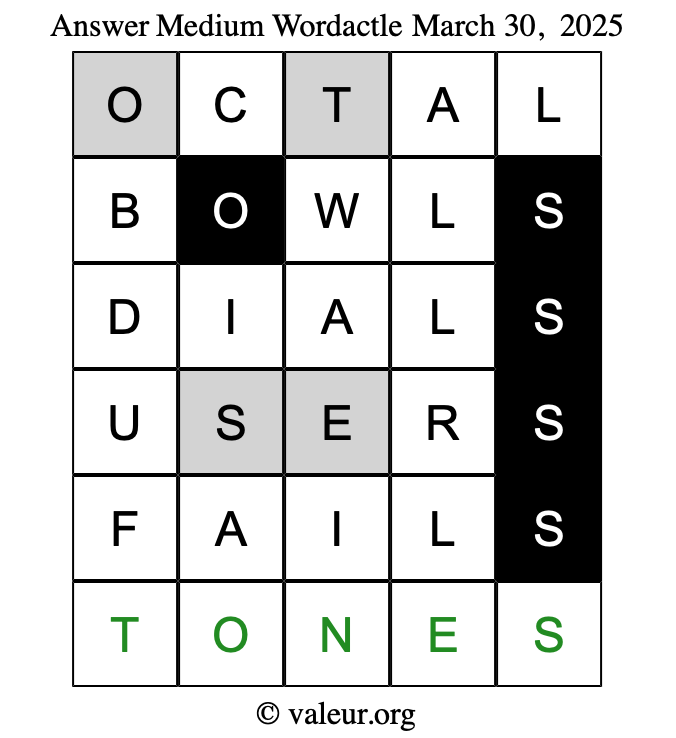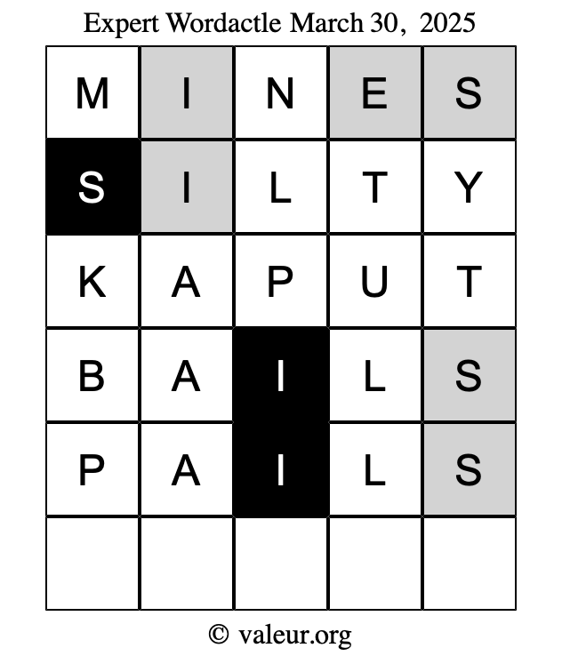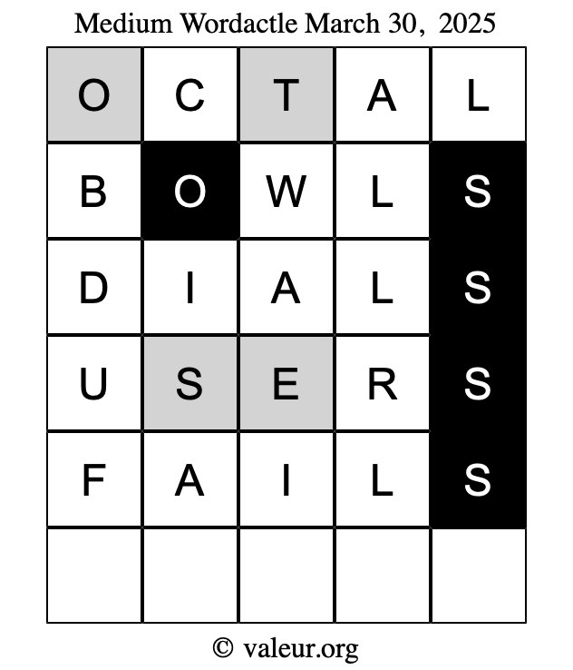 As promised, here is the solution to the March 30, 2025 set of daily four Wordactle puzzles: