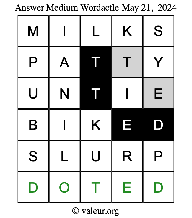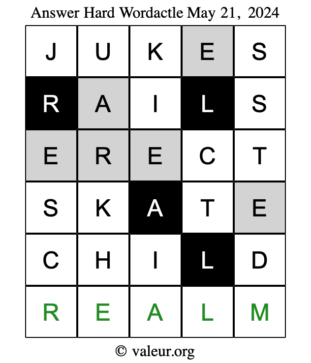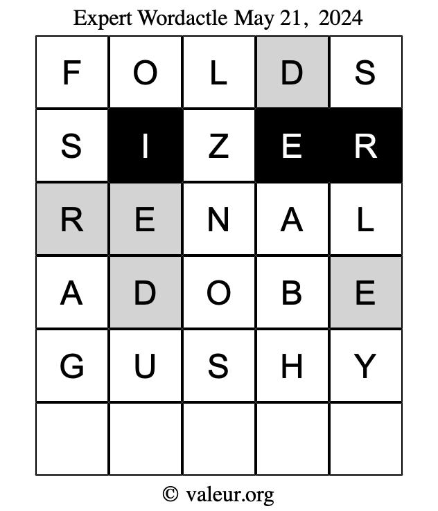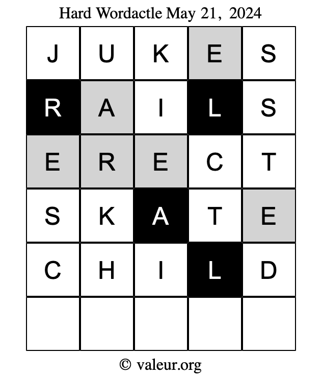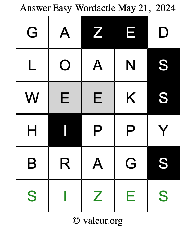 Here are the May 21, 2024 daily four Wordactle puzzles. You are welcome to print a copy of the puzzles and solve them by hand. For your convenience, we have also included the solutions further down the page so you can check your work.