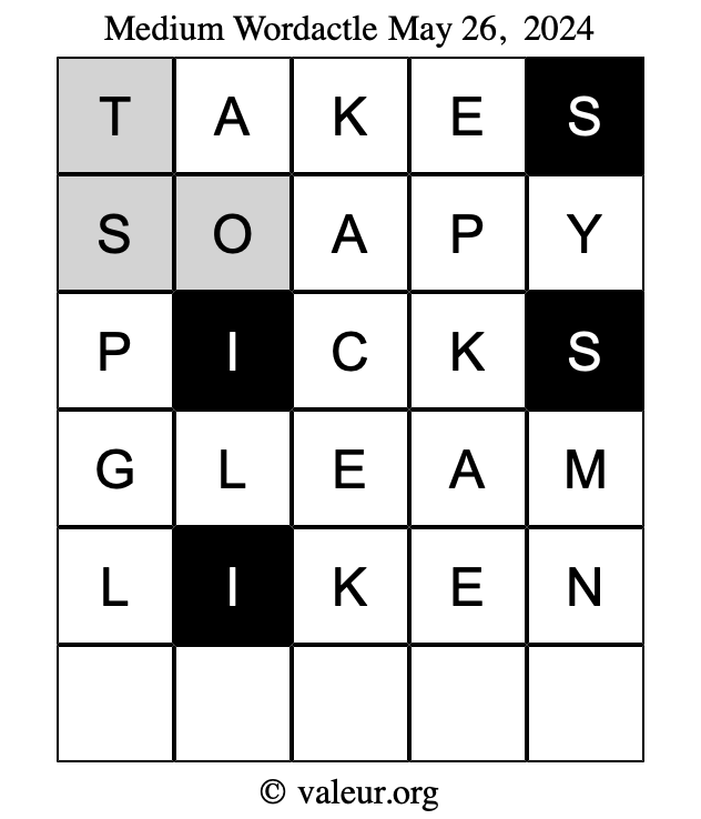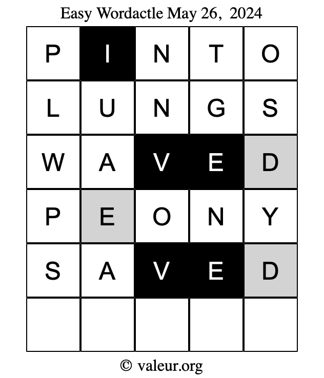 Here is a copy of one of our other dated daily four Wordactle puzzles.