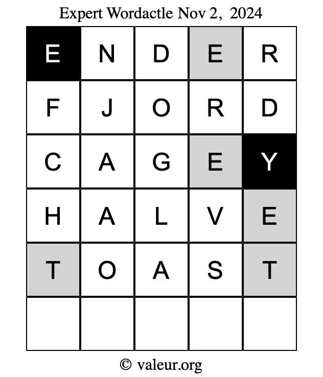 Here is a copy of one of our other dated daily four Wordactle puzzles.