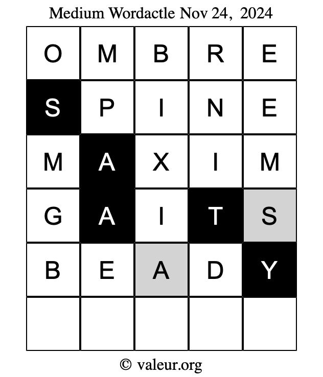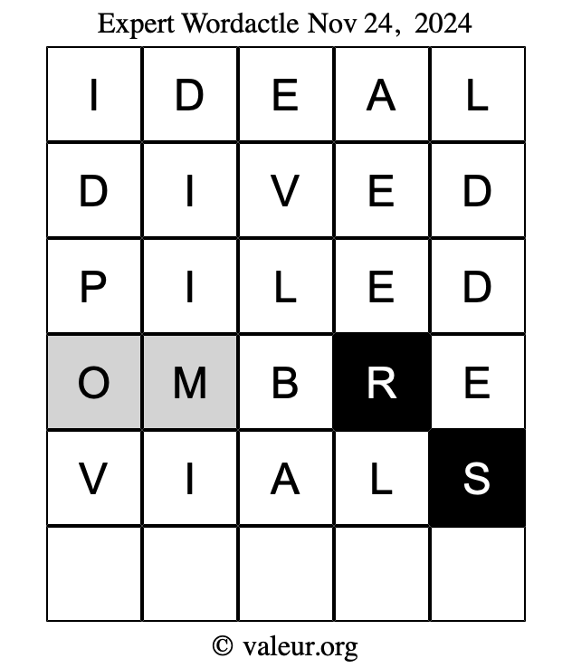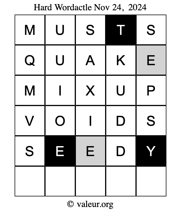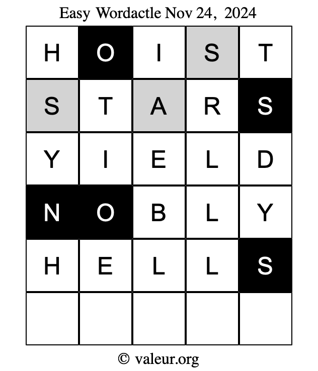 Here is a copy of one of our other dated daily four Wordactle puzzles.