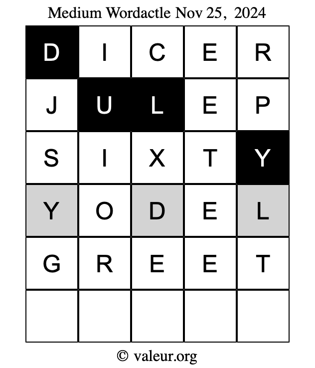 As promised, here is the solution to the November 25, 2024 set of daily four Wordactle puzzles: