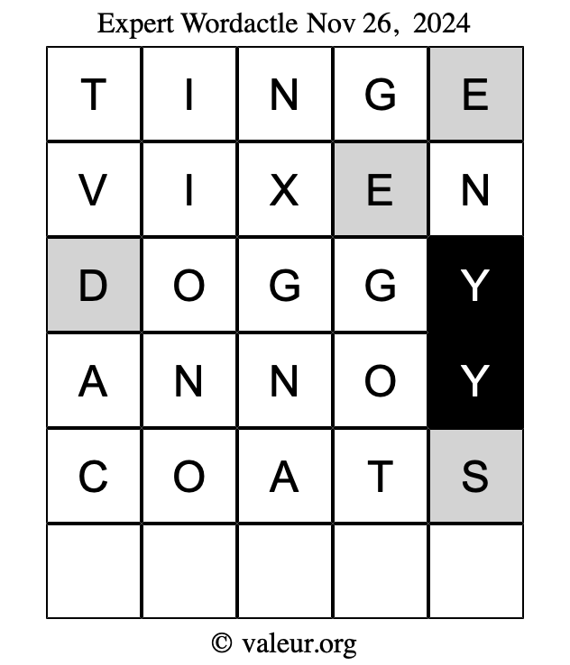 Here is a copy of one of our other dated daily four Wordactle puzzles.