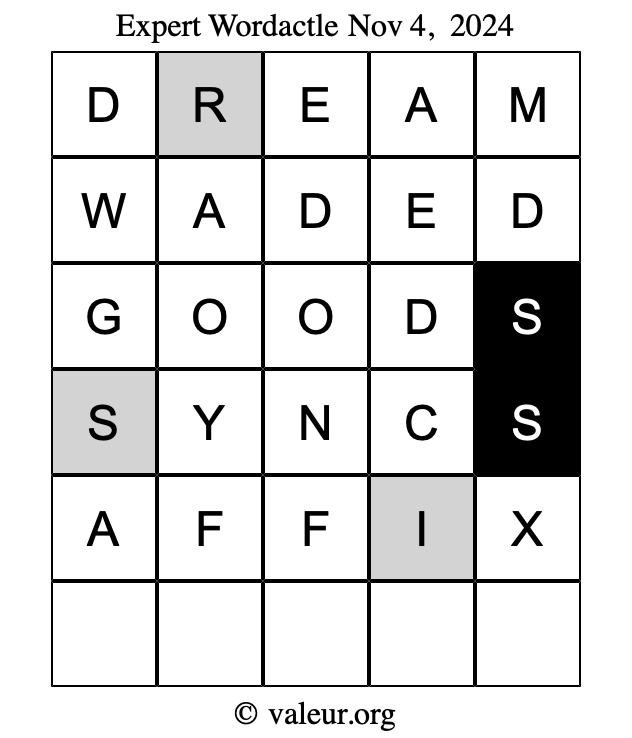 Here is a copy of one of our other dated daily four Wordactle puzzles.