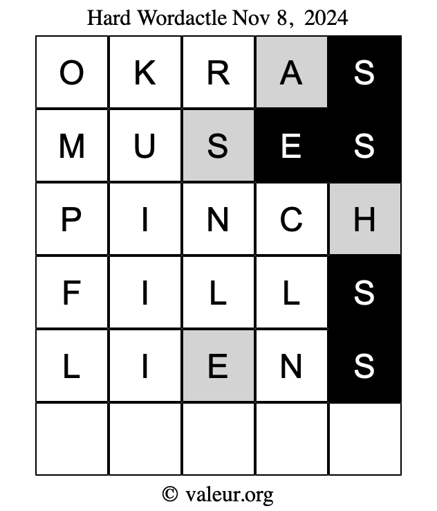 Here is a copy of one of our other dated daily four Wordactle puzzles.