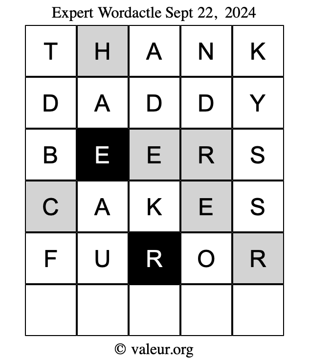 Here is a copy of one of our other dated daily four Wordactle puzzles.