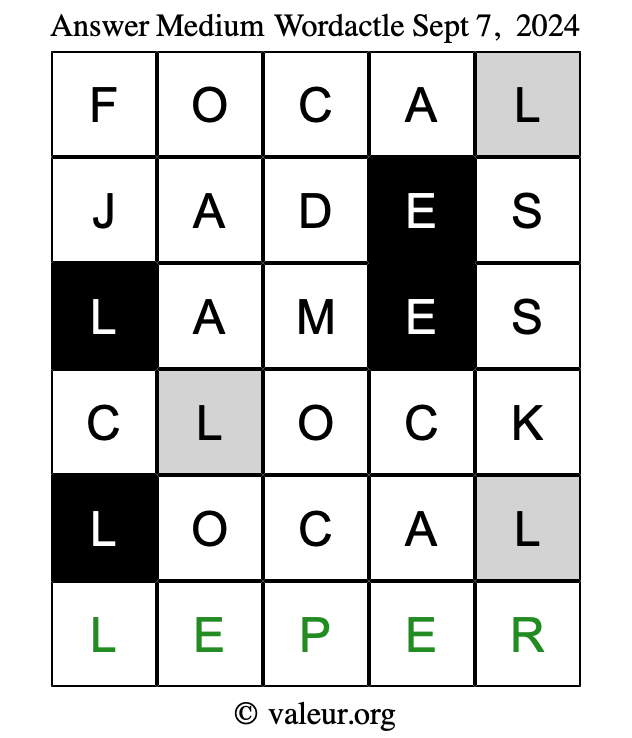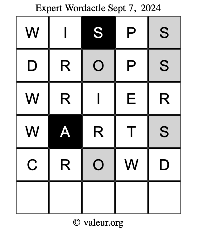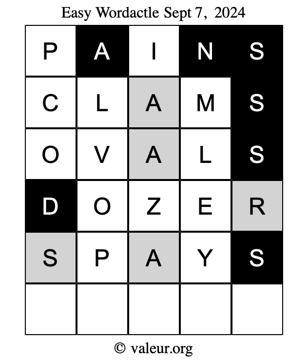 Here are the September 7, 2024 daily four Wordactle puzzles. You are welcome to print a copy of the puzzles and solve them by hand. For your convenience, we have also included the solutions further down the page so you can check your work.