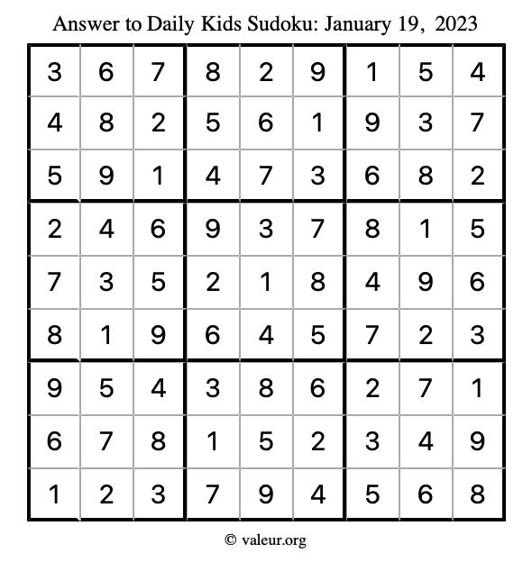 Kids Sudoku January 19, 2023 is not the only sudoku puzzle we have. We create a new kids sudoku puzzle every day for you to print and solve. Check out today's kids sudoku puzzle here!