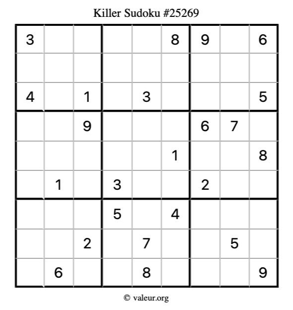 Here is our printable Killer Sudoku Puzzle #25269. You are welcome to print a copy for yourself and solve it the old-fashioned way with a pencil and an eraser!