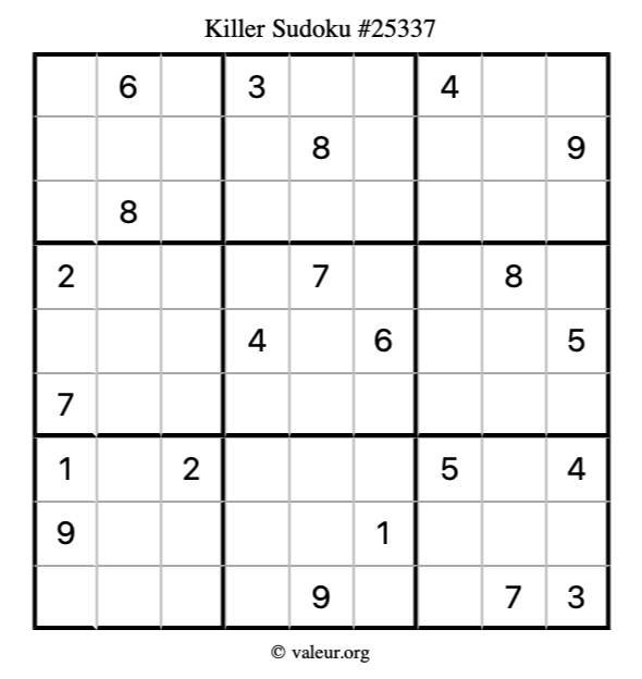 Here is our printable Killer Sudoku Puzzle #25337. You are welcome to print a copy for yourself and solve it the old-fashioned way with a pencil and an eraser!