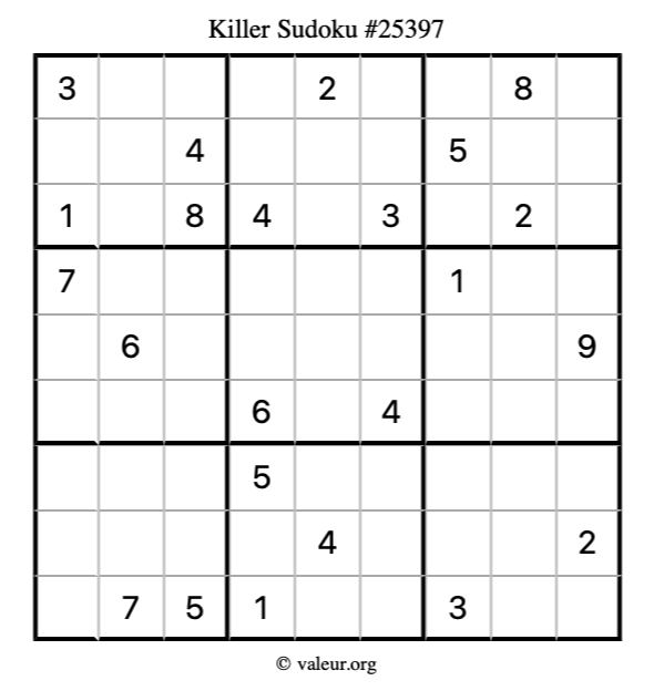 Here is our printable Killer Sudoku Puzzle #25397. You are welcome to print a copy for yourself and solve it the old-fashioned way with a pencil and an eraser!